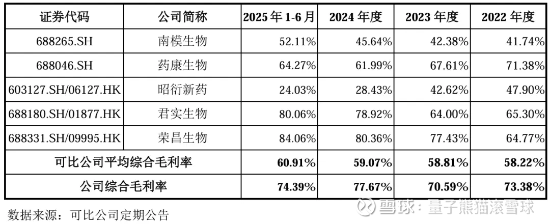 具体毛利率方面,2022年到2025年主营业务毛利率分别为73.40%、70.60%、77.68%以及74.39%。