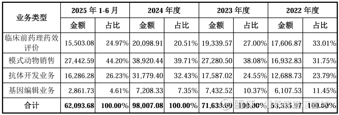 主要业务是通过基因编辑技术提供包括小鼠样本销售、药效评价和抗体开发等业务。