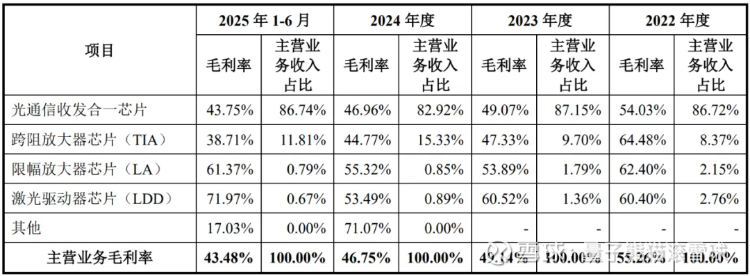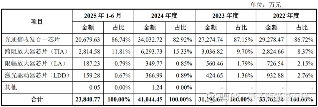 具体营收方面,主要营收来自于光通信收发合一芯片,营收占比超过80%。