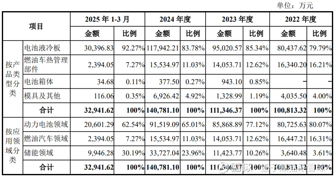 业务主要是电池的液冷板,主要用在新能源车,然后还有部分应用到储能领域。