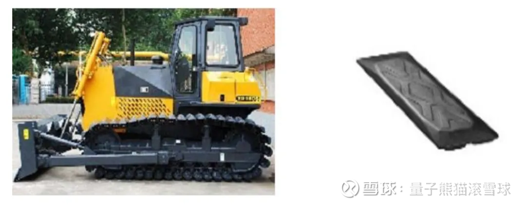 a,橡胶履带是一种由橡胶、金属复合而成的环形带状产品,相比于传统金属履 带,橡胶履带具有接地压力小、重量轻、振动小、路面损伤小、噪声低等优点, 尤其是较小的接地压力,有效减少了对路面或土壤的破坏,在履带式农用机械和 中小型履带式工程机械中应用较为广泛。