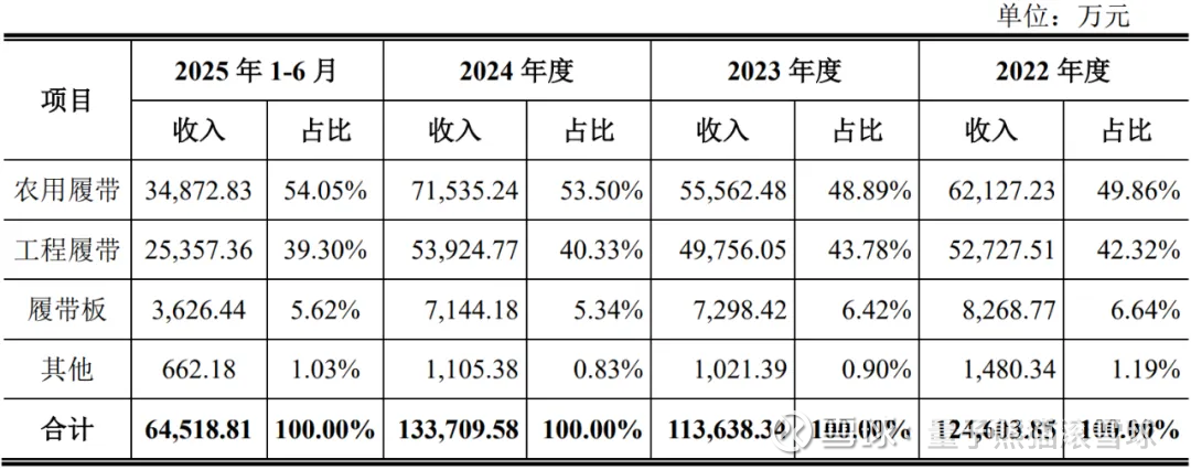 具体营收方面,主要营收来自于农用履带,营收占比超过50%。