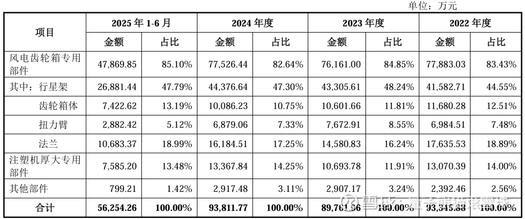具体营收方面,主要营收来自于风电齿轮箱专用部件,营收占比超过80%。