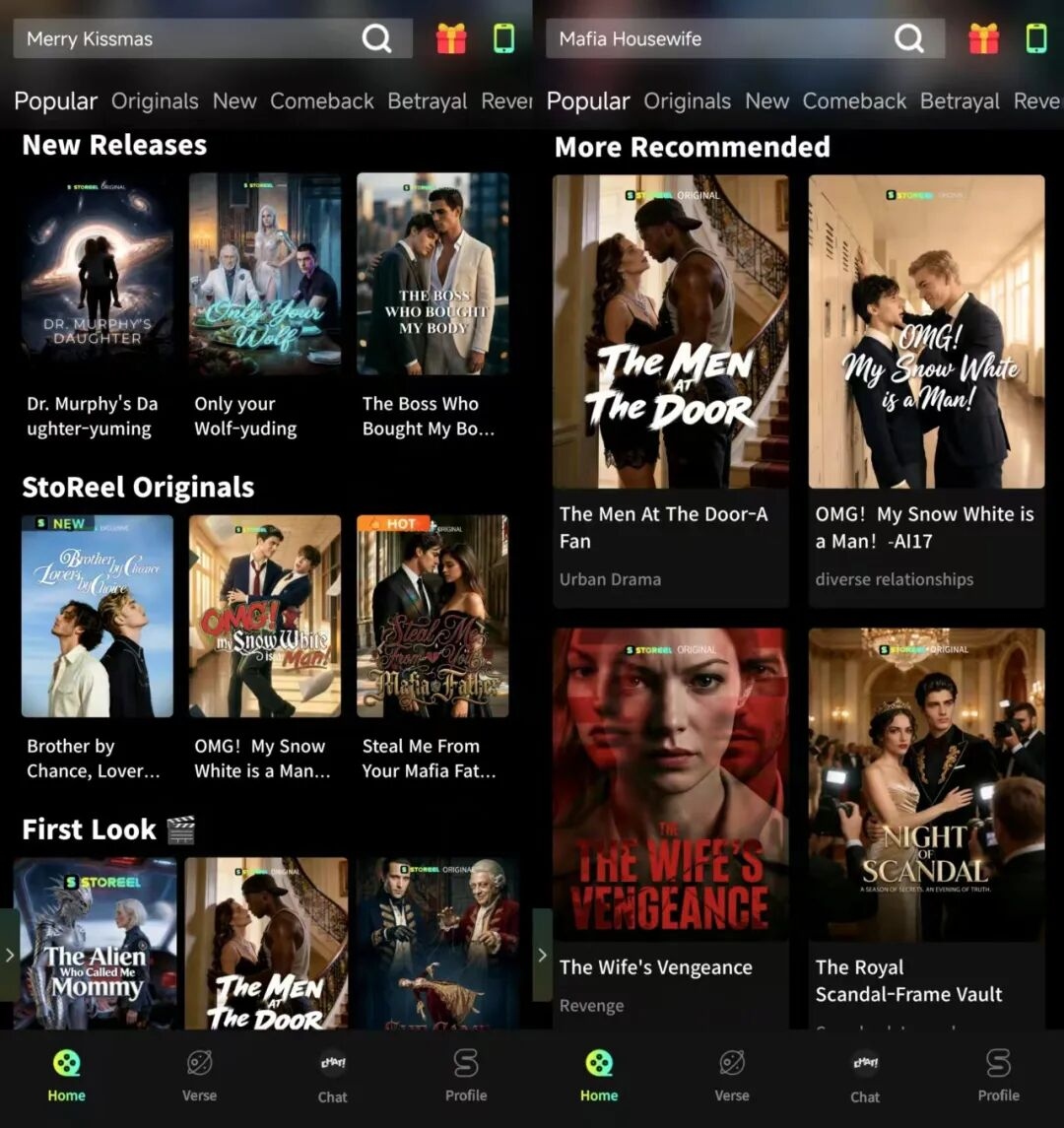 其中,StoReel App2024年下半年正式在海外市场上线,面向以北美为主的海外短剧市场。在StoReel App上,不仅有1-2分钟的竖屏短剧,还推出了互动剧模式,用户可通过剧情投票、角色互动等方式,深度参与故事发展。从当前StoReel首页内容来看,平台以本土题材短剧为主,更贴合海外用户的内容偏好。