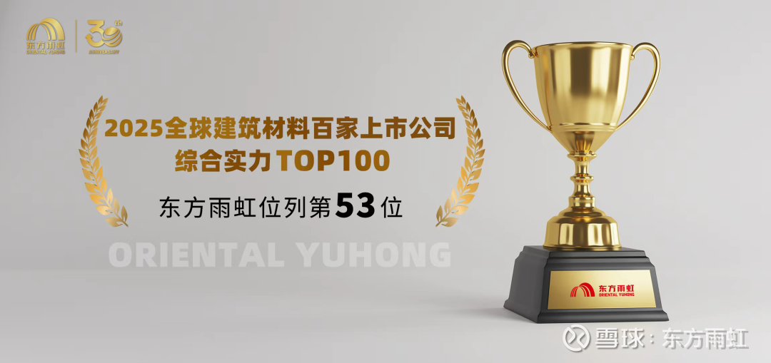 近日,中国建筑材料联合会发布《2025全球建筑材料百家上市公司综合实力》榜单。东方雨虹凭借出色市场表现与强劲综合实力再次荣耀上榜,位列第53位。这份荣誉不仅标志着企业的国际地位与综合价值获得行业与社会广泛认可,更折射出企业在三十年创业历程中所构建的以全球为视野、以创新为驱动、以品质为根基的高质量发展格局。