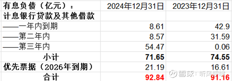 可见,截至23年底,公司短期有息负债42.9亿,长期有息负债48.26亿,合计91.16亿,而在24年内,公司总的有息负债并没有减少,反而轻微上升,但短/长期结构发生较大变化,公司把大量短期或临近到期的长期债务置换成了新的长期债务,减小了短期内还本压力。25年到期的债务8.61亿, 26年到期8.57亿,但还有额外的21亿优先票据也将到期,27年到期54.47亿。这样看上去,公司26和27年的还本压力会非常大。