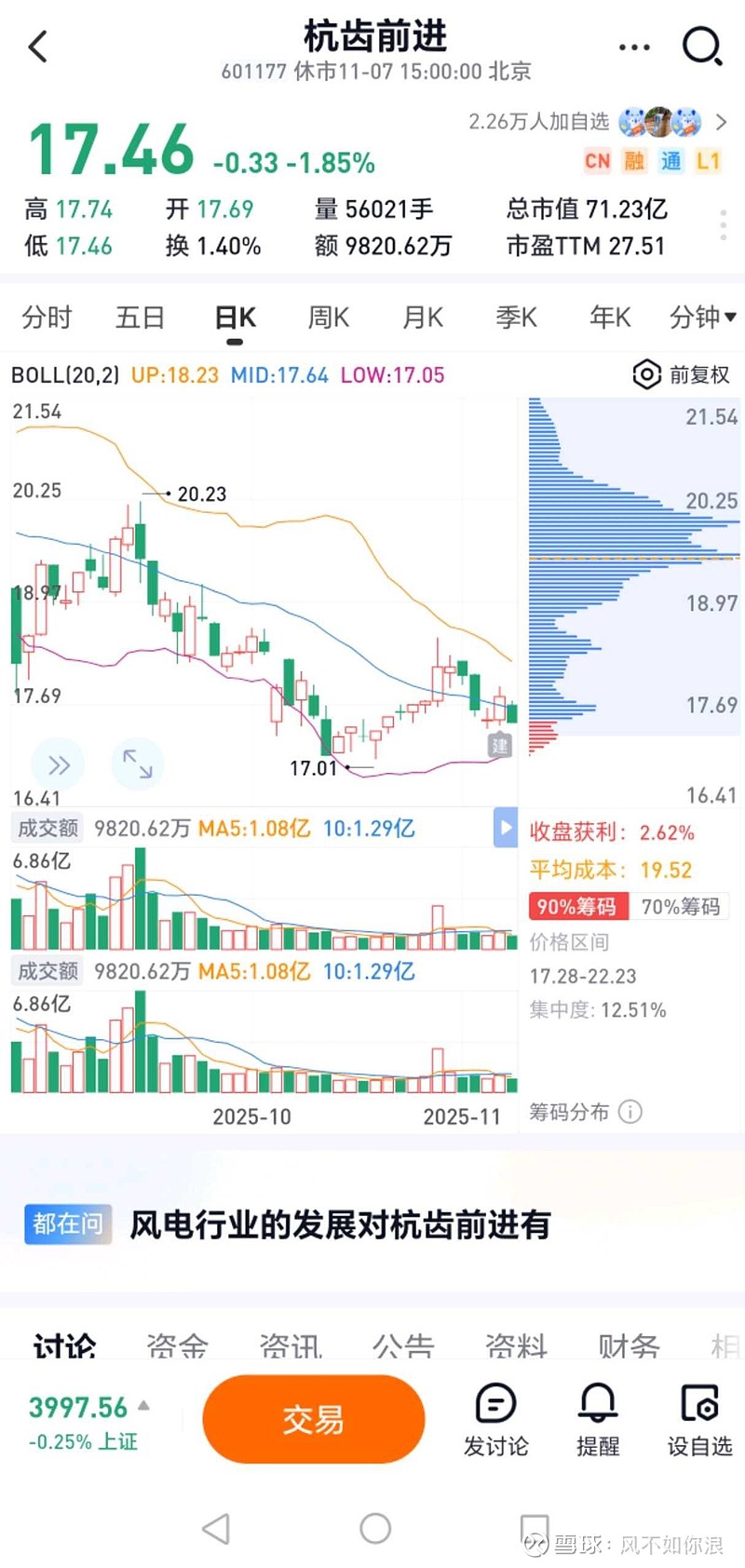 是时候漏个B点了,获利盘只有2.6,上方套牢盘加仓也利我,砸也利我,优势在我。目标30。