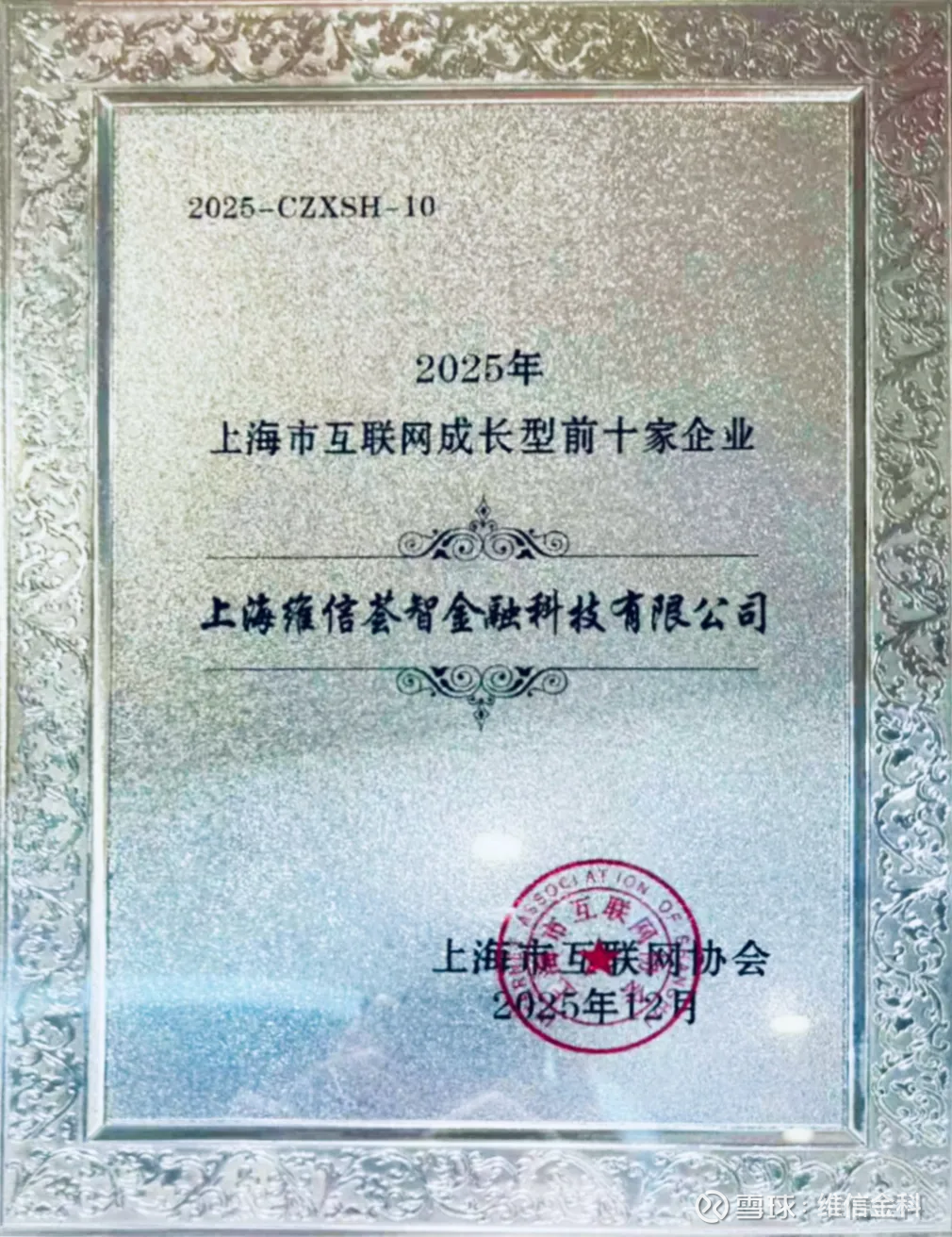 近日,以“数智领航,沪链全球”为主题的上海市互联网产业年会在沪隆重举行。会上,上海市互联网协会发布了《上海市互联网企业综合实力指数报告》,维信金科凭借在稳健经营、创新驱动与社会责任承担等方面的综合表现,连续第二年成功入选“上海市互联网综合实力前五十家企业”与“上海市互联网成长型前十家企业”。