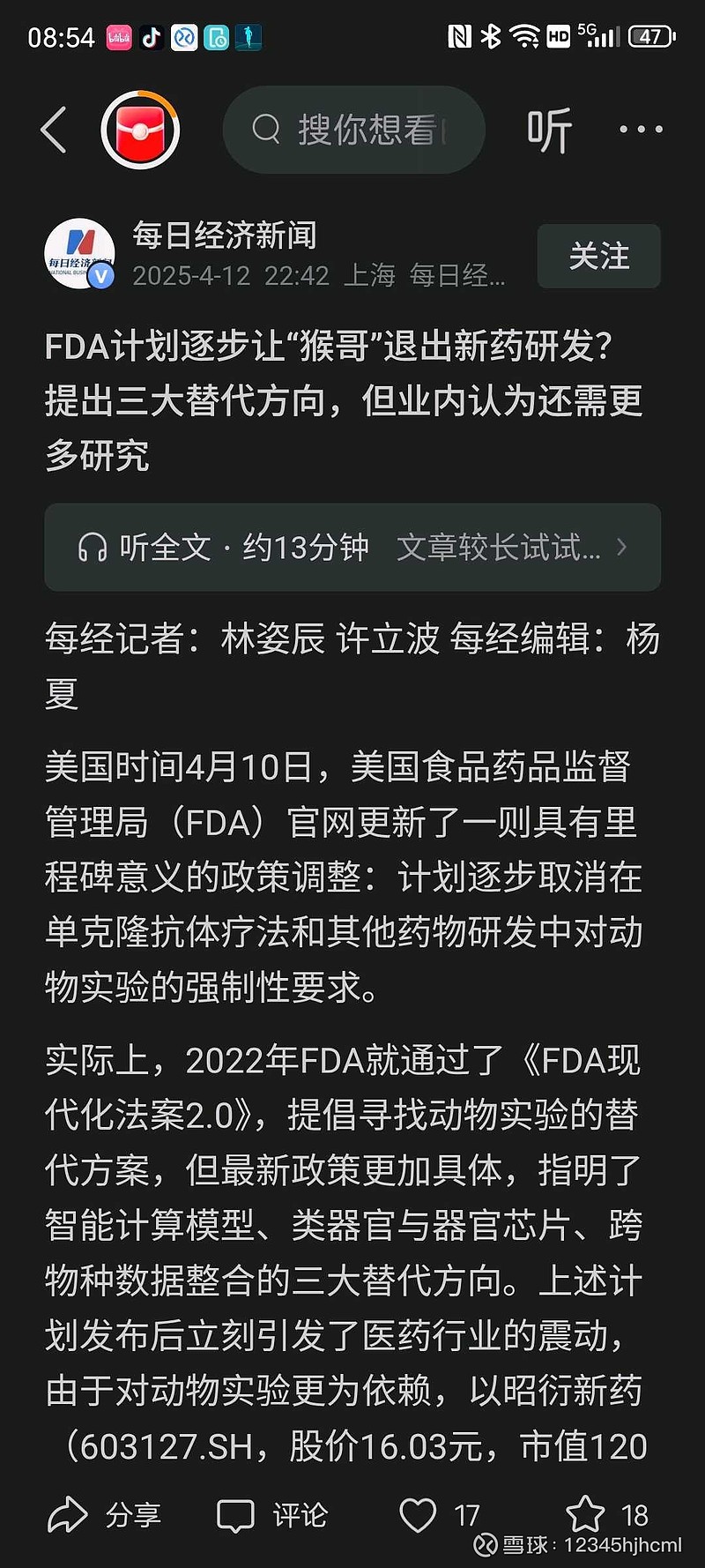 昭衍新药价格暴涨,之前看消息说人工智能会部分代替动物实验,以为卖猴子的昭衍新药要垮了。结果呢?猴子价格暴涨。