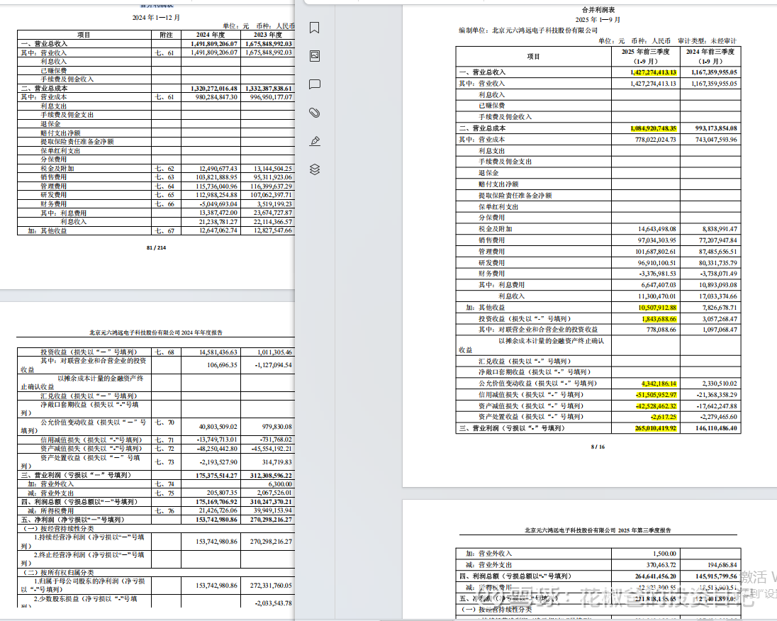 10.31鸿远电子发布了三季报和《鸿远电子关于2025年前三季度计提资产减值准备的公告》,主要内容就是:根据《企业会计准则》的相关规定,对截至 2025 年 9 月 30 日公司及下属子公司存在减值迹象的资产进行减值测试,根据测试结果,2025 年前三季度计提