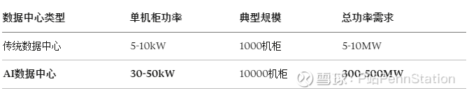 AI数据中心的功率密度是传统的5-10倍。