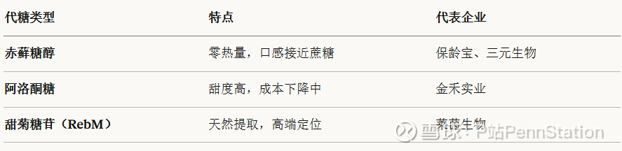 代糖技术成熟:赤藓糖醇、阿洛酮糖等天然甜味剂成本下降、口感改善