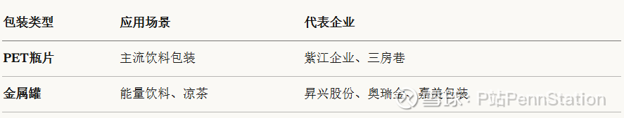 产业逻辑: 包装材料是典型的"卖水人"逻辑,下游饮料景气度直接拉动需求。金属包装行业协同性增强,盈利能力有望改善。