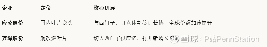 产业逻辑: 涡轮叶片是燃机产能的终极瓶颈,订单排至2030年。国际龙头扩产缓慢且优先供应航空,为中国供应商打开历史性窗口。应流股份深度绑定西门子、贝克休斯,份额加速提升。