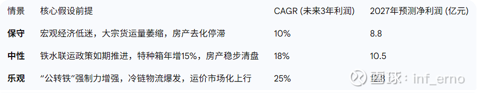 由于铁龙物流具备极强的现金回笼能力(尤其是铁路业务和房产清算),且未来三年的增长具有明确的确定性,DCF模型比市盈率模型更能捕捉其真实价值。