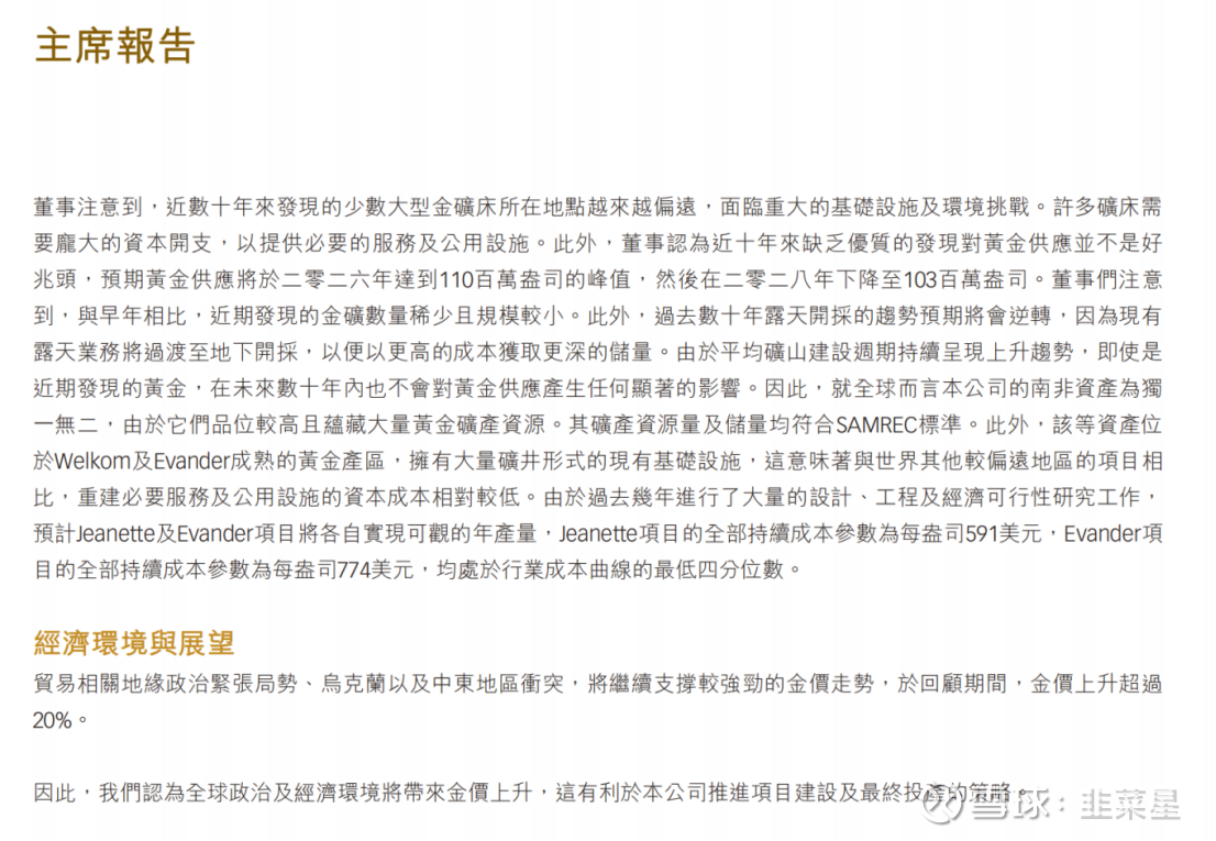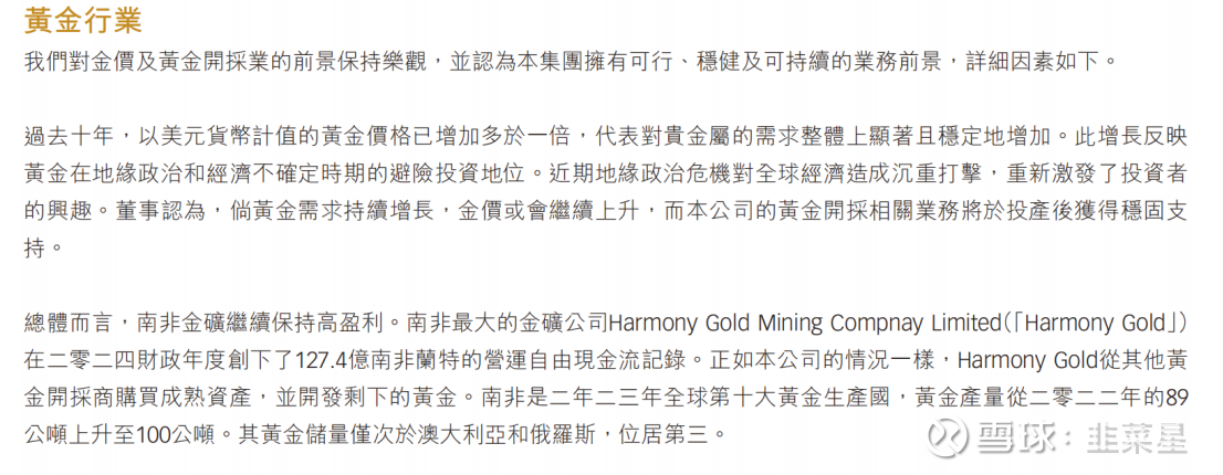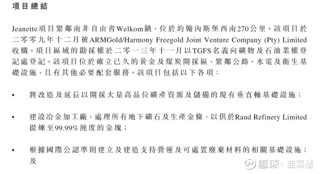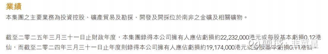 主要是一家在南非的勘探和开采金矿公司