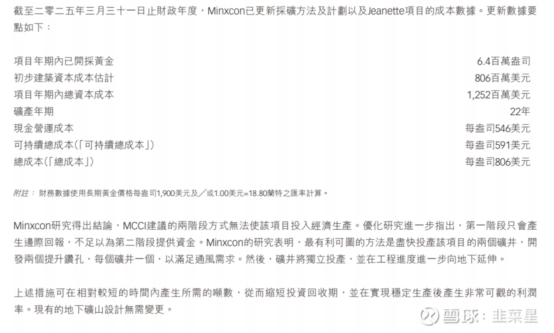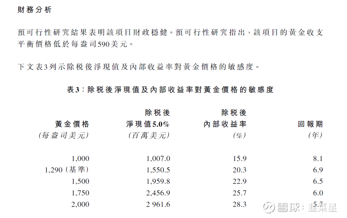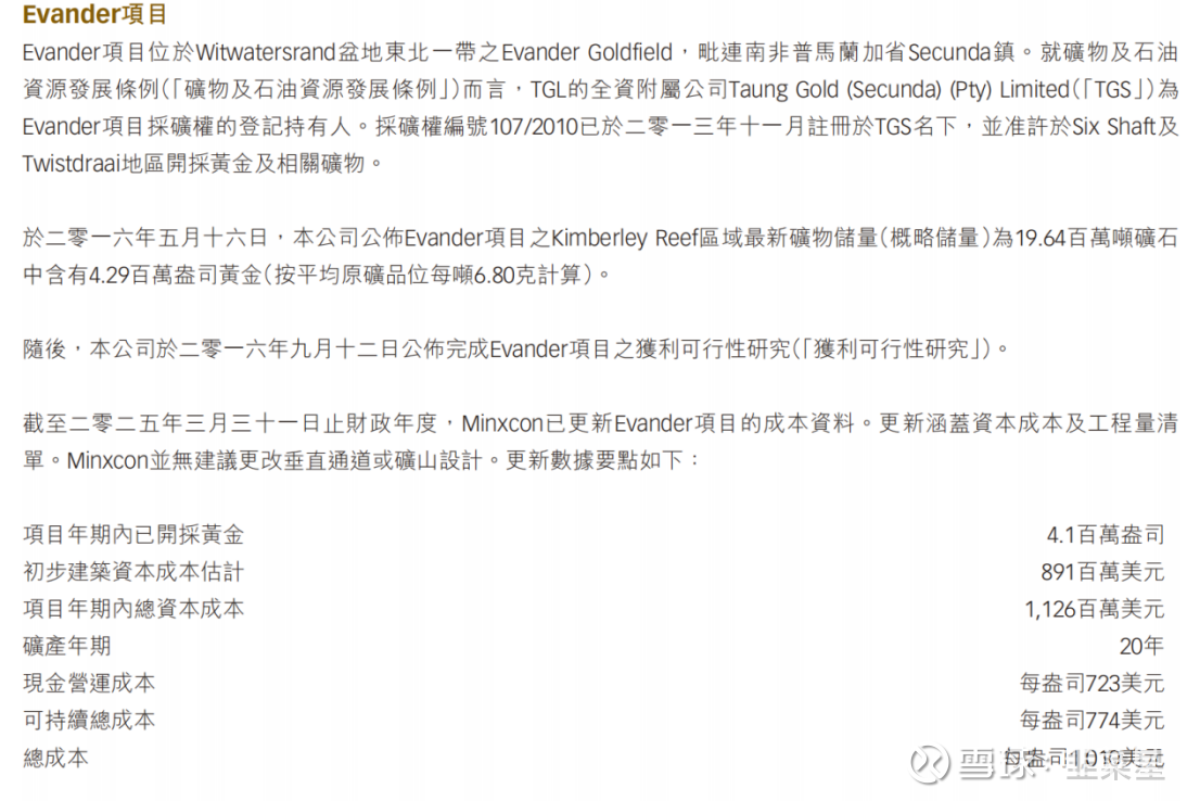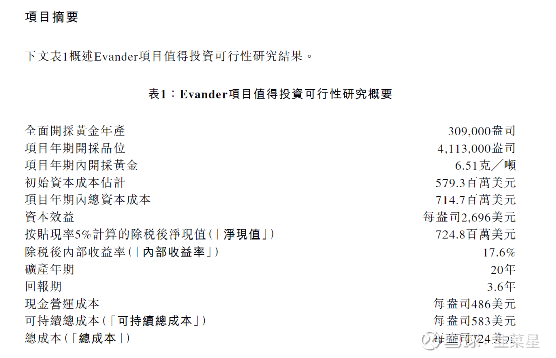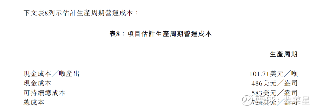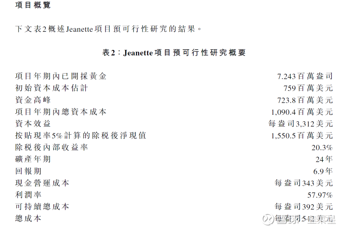 初期资金需要7.59亿美元,折合60亿港币。每年的现金成本为343美元每盎司。看的出成本很低,哪怕放在10年前1290美元每盎司的金价来看,依旧有利可图。