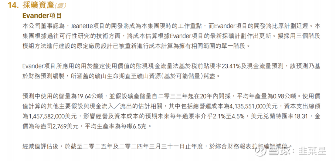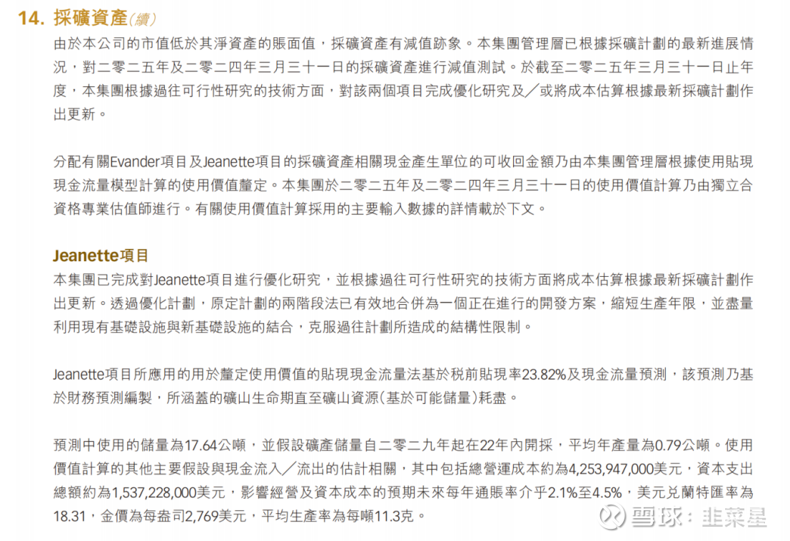 财报里的采矿资产估值附注