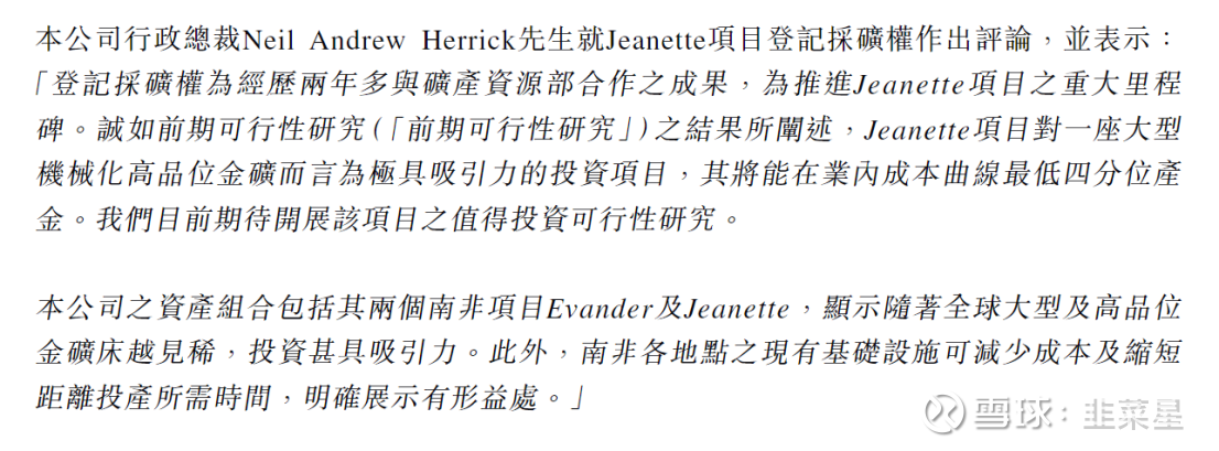 2024年,证实了该项目的可行性。公司将重点工作放在Jeanette项目上,E项目缓慢推进。