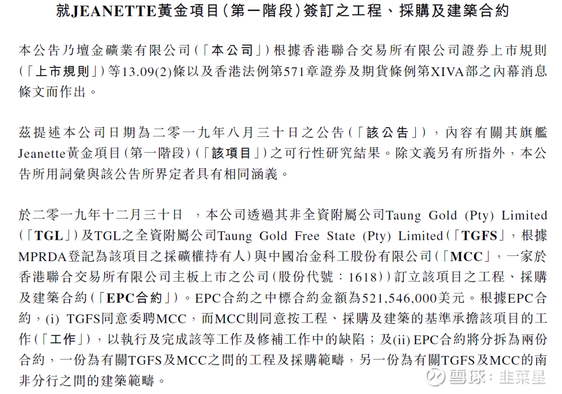 疫情前,即2019年年末,南非坛金与MCC签订了EPC合约,金额为5.21亿美元。后续因疫情原因搁置,直到2023年重启。