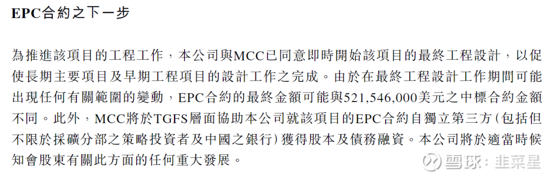 J矿EPC合约5亿美金,折合40亿港币,J矿达产后半年即可把工程款结清。