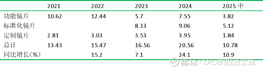 根据地区分类,公司2024年的销售收入只有6.55亿在本国,占比31%,其余的来自于各个国家。因为公司的战略目标针对全球,所以传统镜片的未来市场不太好预估,不过,和一些全球的知名镜片公司如依视路,蔡司,豪雅,尼康等,公司在技术上还是远远落后于这些公司。由此也可看出,公司走的路线总体上属于中端偏中低端水平,但在某些细分领域(如定制镜片、功能镜片)正在向中高端转型。