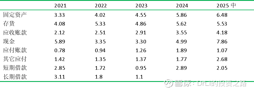 公司的固定资产每年增加,值得注意的是公司的存货,2024年存货为5.62亿,占比营收为28%,存货周转率2.41次/每年,存货周转天数为151天,而明月只有11%,存货周转率3.89 次/年,存货周转天数为93.8天。总的来说,康耐特存货高、周转慢,反映出其库存资金占用大、生产灵活性不足,并且存货中有57%是成品,未来有折旧或计提风险。应收账款为3.55亿,主要都是1年期的。账上有5亿现金,2025年中为7.86亿,其中有上半年融资的7.67亿。短期借款为2.89亿,没有长期借款。总的来说,存货稍高,其它都挺好。