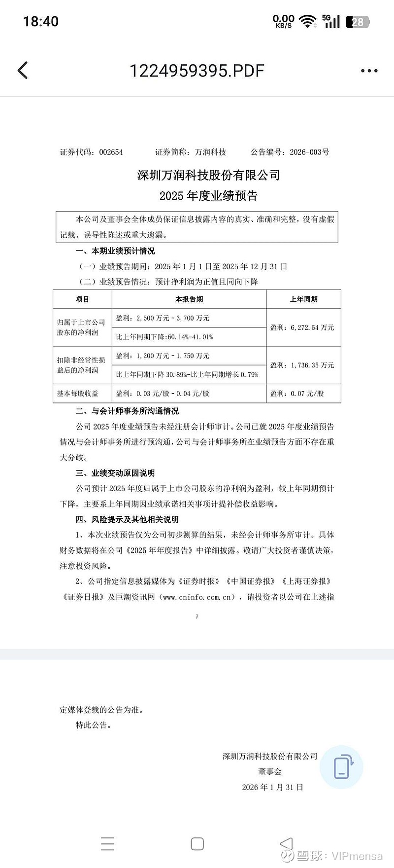 $万润科技(SZ002654)$ $上证指数(SH000001)$ $创业板指(SZ399006)$ 之前一直担心的万润科技2025年业绩“雷”,总算彻底落地了!其实早就有人说过,真没必要死盯着2025年的利润数据不放,这玩意儿根本说明不了啥核心问题。