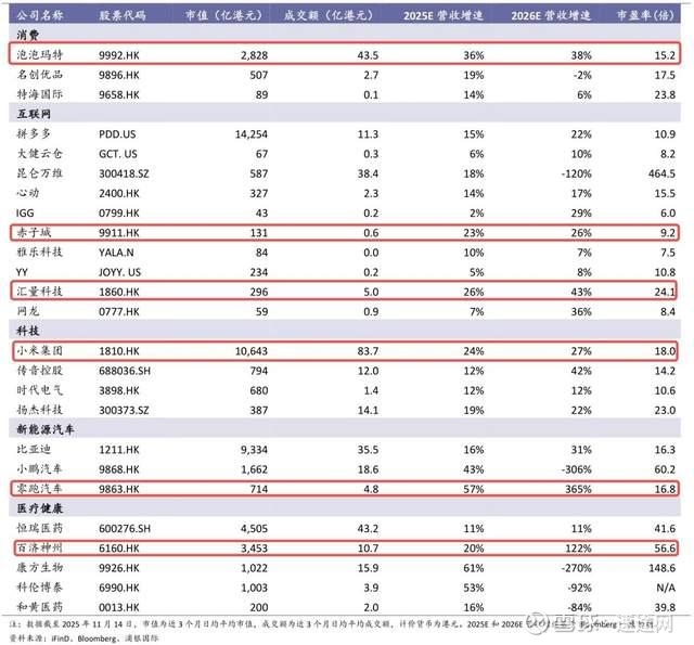 浦银国际列出了25只值得关注的出海概念股,其中 2025 E 营收同比增长率和 2026 E 营收同比增长均超过20%的标的有:泡泡玛特、赤子城、汇量科技、小米集团、零跑汽车和百济神州。