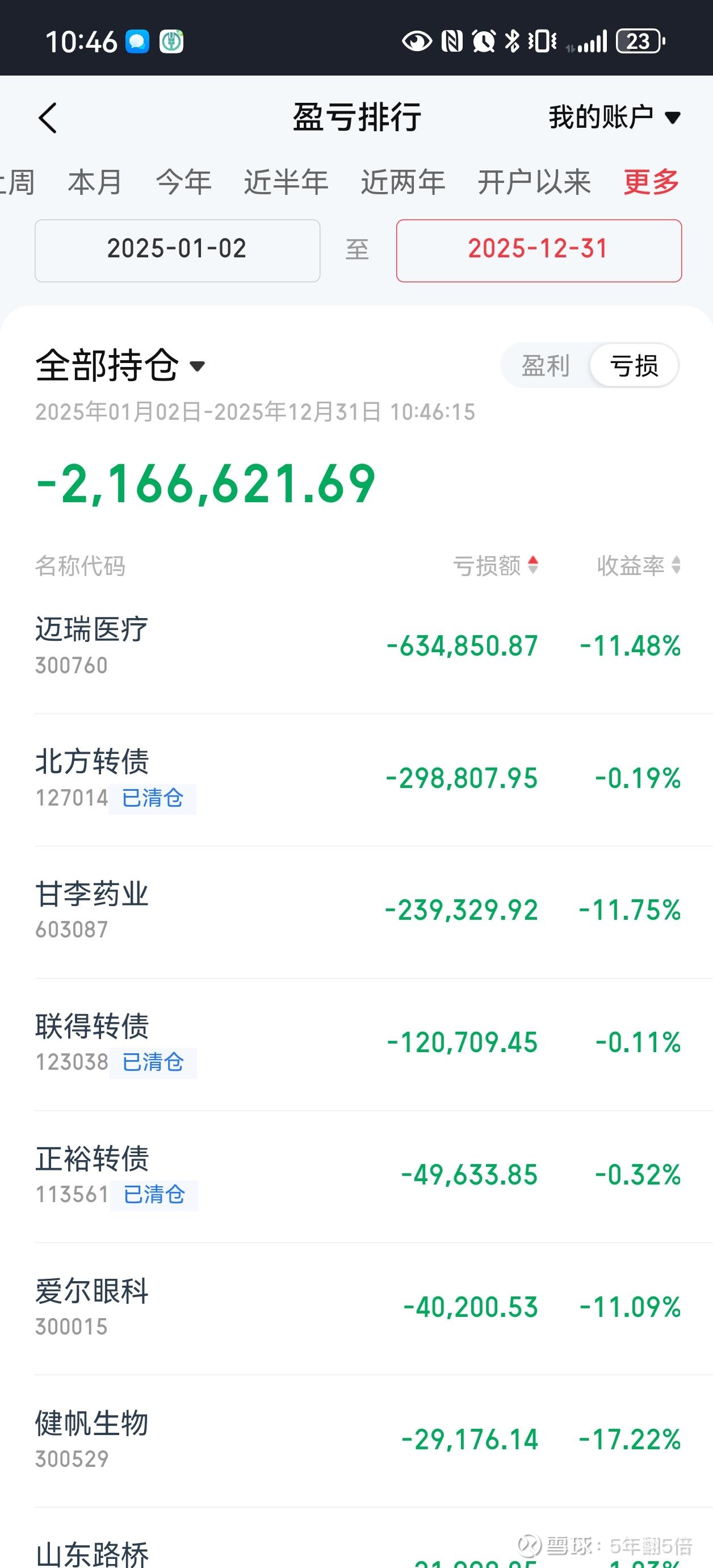 亏损第一就是迈瑞医疗这个老登,本来应该是触底了 ,结果是个L底 ,明明是个高科技股,却连普通制造业的市盈率都不给,服了。还有4月份大跌的时候割了很多高价债造成了实质性亏损,其实如果一直拿着后续都赚钱了,