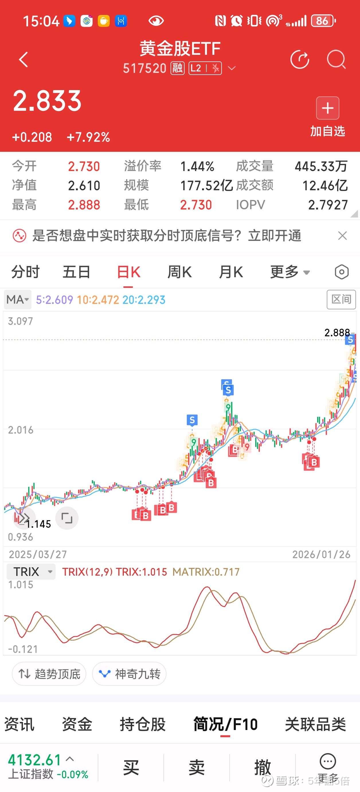 黄金股ETF 从1.9买到2.2 现在也开始出了 不知道能不能冲三块