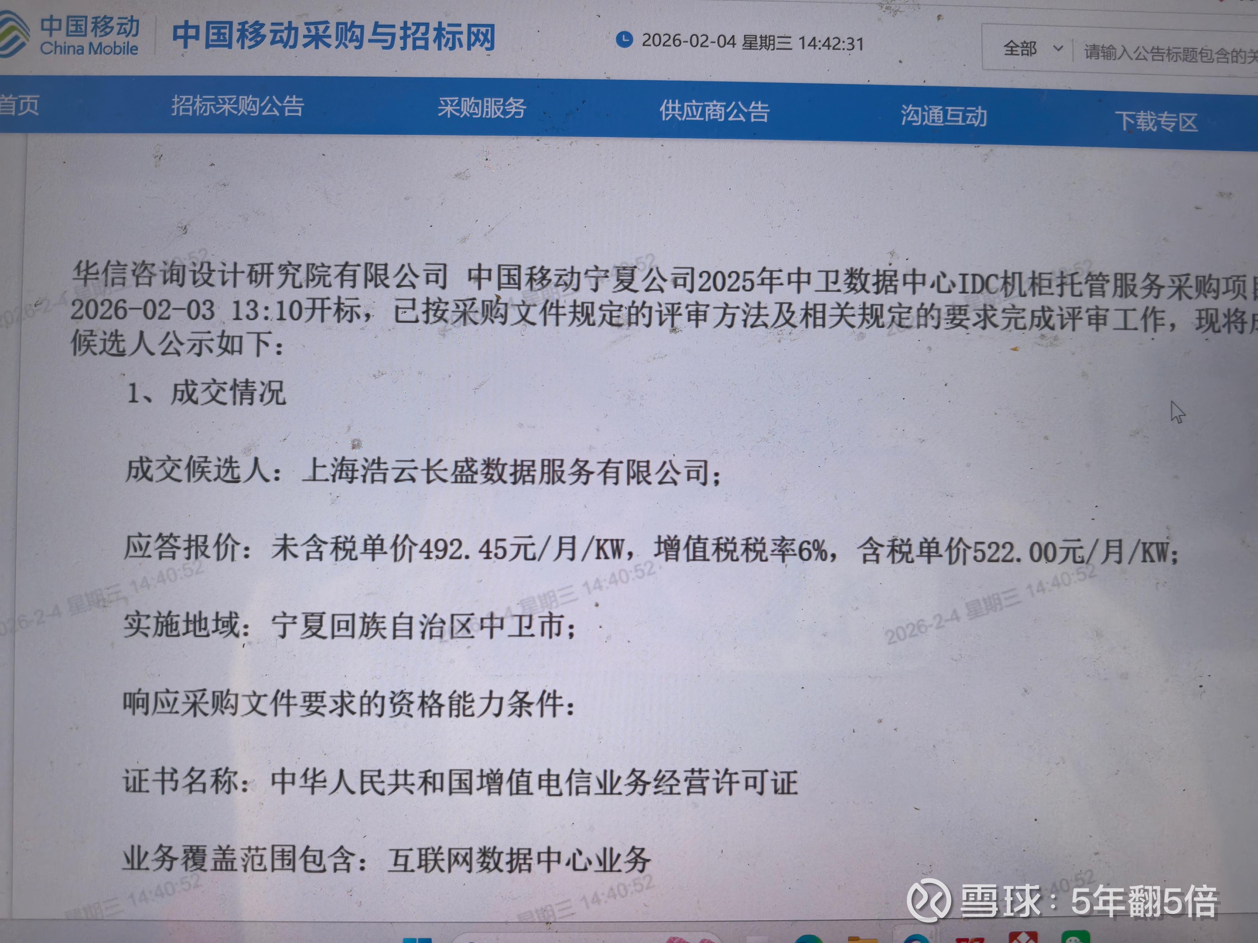 (47亿大标被上海浩云长盛拿走了,很多人预期香香能分得一杯羹,其实有点牵强,这个是26-30年五年的托管服务合同,之前20-25年的托管服务就是浩运长盛提供的,只要没出什么大问题,又采用的是谈判模式,大概率还是浩运长盛 )
