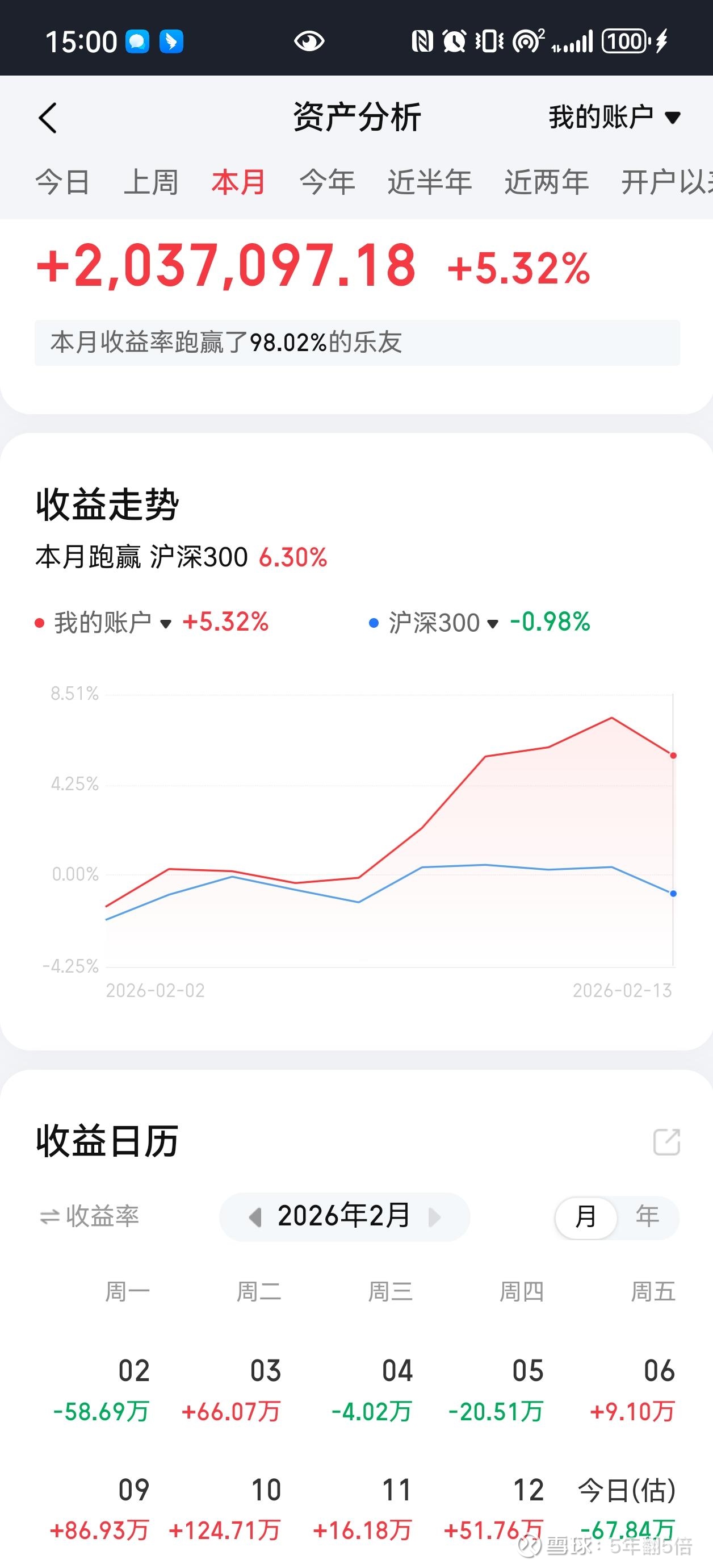 账户上 结束了五连涨,今天爆亏67.8W ,跑输大盘指数,就让所有的苦痛伤害亏损都留在蛇年吧 ,马年再战!!!哪能天天吃肉,总有挨打的时候,但是如果你不能接受挨打,可能一块肉也吃不到。所以吃肉挨打吃肉很正常 ,不要挨打挨打挨打挨打就行