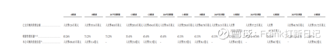 主要疑虑:与巨额合作协议形成反差的是公司在一级市场的估值表现。其估值从2022年E1轮的45.5亿元人民币,2025年末轮缓慢增长至50.2亿元人民币。