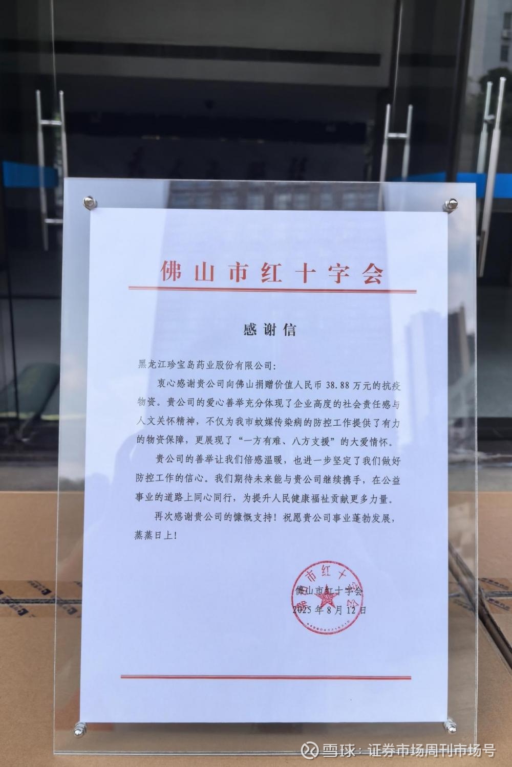 8月13日,这批承载着企业爱心与责任的药品被正式移交至佛山市红十字会。在捐赠现场,佛山市十字会副会长刘献忠表示:“此次珍宝岛药业捐赠的举措,是企业社会责任感的体现,为佛山市蚊媒传染病的防控工作提供了有力的物资保障,也为抗击疫情注入了信心和力量。期待未来能与珍宝岛药业继续携手,在公益事业的道路上同心同行,为提升人民健康福祉贡献更多力量。”