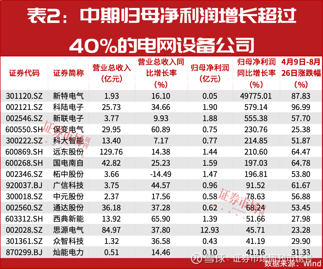 需要指出的是,业绩增长最快的新特电气、科陆电子、新联电子在2024年中期时还均为亏损,今年中期因市场环境出现积极变化而分别实现盈利532.87万元、19008.03万元、18800.05万元。譬如,科陆电子在8月20日发布的投资者关系活动表中称,“2025年上半年,公司紧抓能源结构升级的发展机遇,积极开拓国内国外市场,加大研发创新力度,不断丰富产品线,持续优化内部生产管理。”基本面的明显改善,让3家公司4月9日至8月26日期间的股价表现出色,分别上涨了87.8%、97%、57.7%。