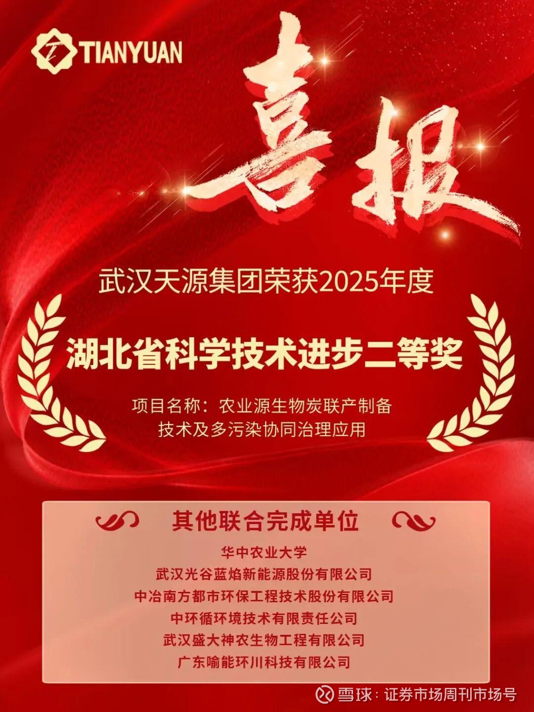 近日,2025年度湖北省科学技术奖获奖名单正式揭晓。武汉天源集团联合参与的“农业源生物炭联产制备技术及多污染协同治理应用”项目,凭借在资源循环利用与污染治理领域的技术突破,荣获2025年湖北省科学技术进步二等奖。