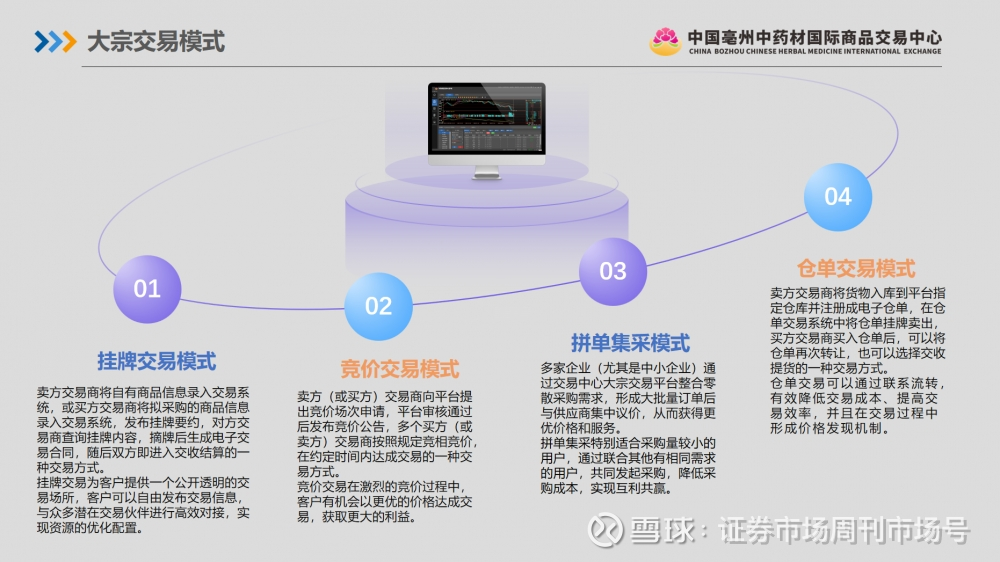 与传统线下交易相比,平台实现了从“看货议价”到“电子仓单、线上成交”的转变;平台立足实物交收和供应链支持,不脱离实体经济需求,更适合中药材这类非标属性较强的商品。