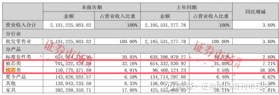 国内家纺业务是公司的核心业务,上半年实现营业收入17.89亿元,同比增长6.49%;实现净利润2.12亿元,增幅达18.35%。具体到产品,被芯(32.16%)和标准套件(30.03%)依旧是收入主力。报告期内,公司打造极致爆品,陆续推出零压深睡枕、安睡无痕床笠,在市场上获得消费者的诸多好评,枕芯类产品营收大幅上涨56.3%。(见图3)