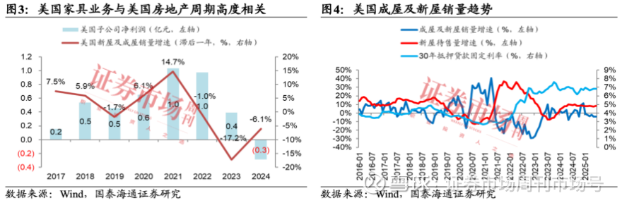 不过,罗莱生活的美国家具业务上半年实现收入3.92亿元,同比下降7.81%,实现净利润亏损2875.34万元,与2024年同期相比亏损扩大。银河证券表示,美国地产仍受到高利率影响整体终端需求较为低迷,拐点仍需观察。(图4)