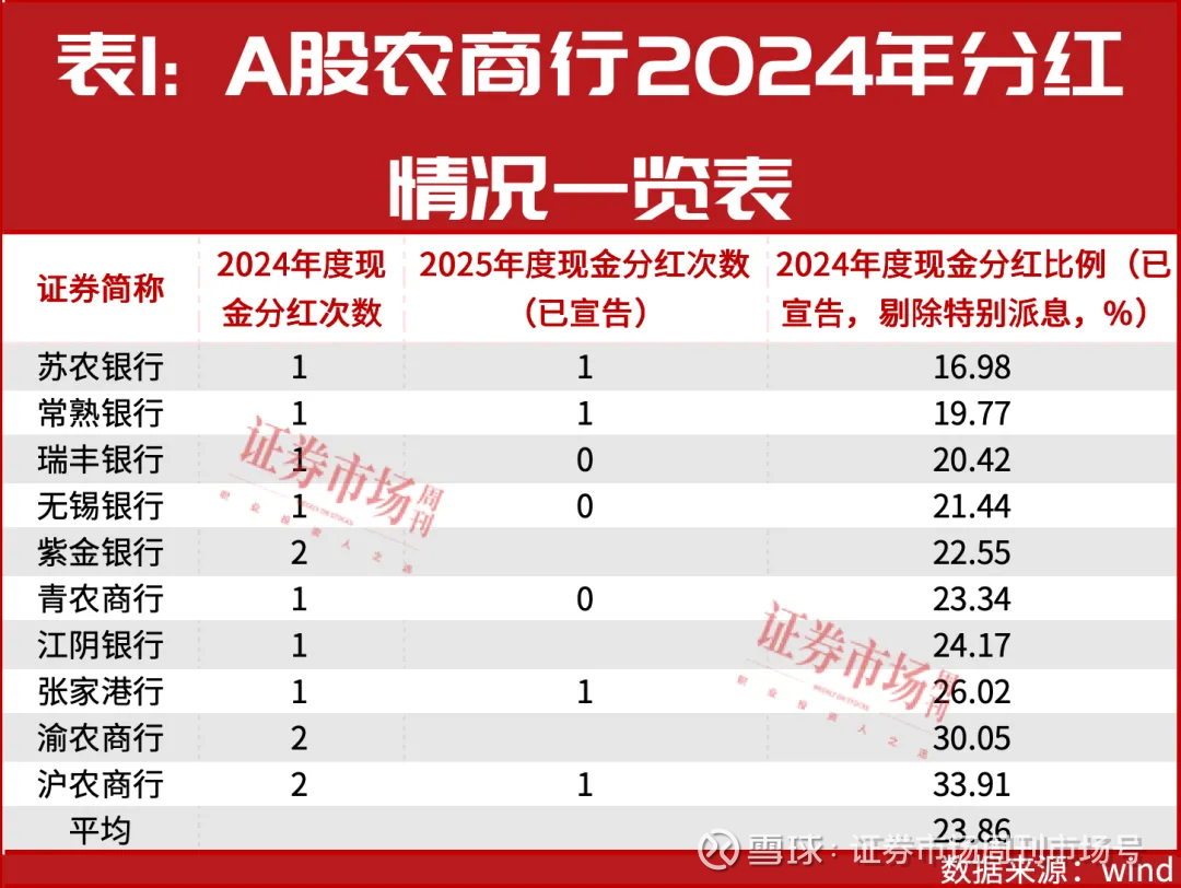 从2024年的分红情况来看,农商行的分红低于城商行、股份行,更低于国有大行。