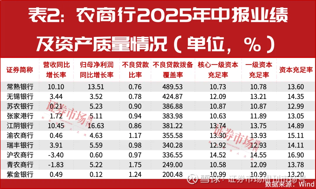 常熟银行的业绩在农商行中十分显眼,上半年该行共实现营业收入60.62亿元,同比增10.10%;实现归母净利润19.69亿元,同比增13.51%,在农商行中属于第二高。