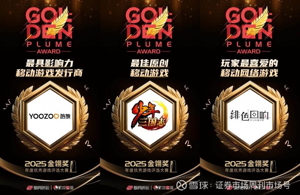 12月3日,2025年度优秀游戏评选大赛(金翎奖)获奖名单揭晓,游族网络蝉联“最具影响力移动游戏发行商”,旗下产品《少年三国志》获评2025金翎奖“最佳原创移动游戏”,《绯色回响》荣获2025金翎奖“玩家最喜爱的移动网络游戏”。