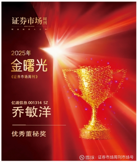 近日2025年《证券市场周刊》市值管理“金曙光”榜单揭晓,深圳市亿道信息股份有限公司(股票代码:001314)副总经理、董事会秘书乔敏洋凭借其在投资者关系管理、公司治理与战略协同领域的卓越表现,斩获“金曙光优秀董秘奖”。这一荣誉不仅是对她个人专业能力的高度认可,更是对亿道信息在市值管理与高质量发展道路上突出成就的有力印证。