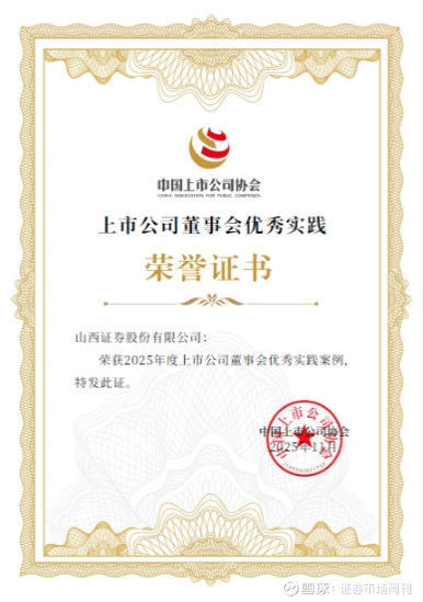 近日,中国上市公司协会发布“2025年度上市公司董事会最佳实践案例”评选结果,山西证券申报的《守正创新 规范高效 扎实推进董事会高质量建设》案例成功入选,并荣获“2025年度上市公司董事会优秀实践案例”。