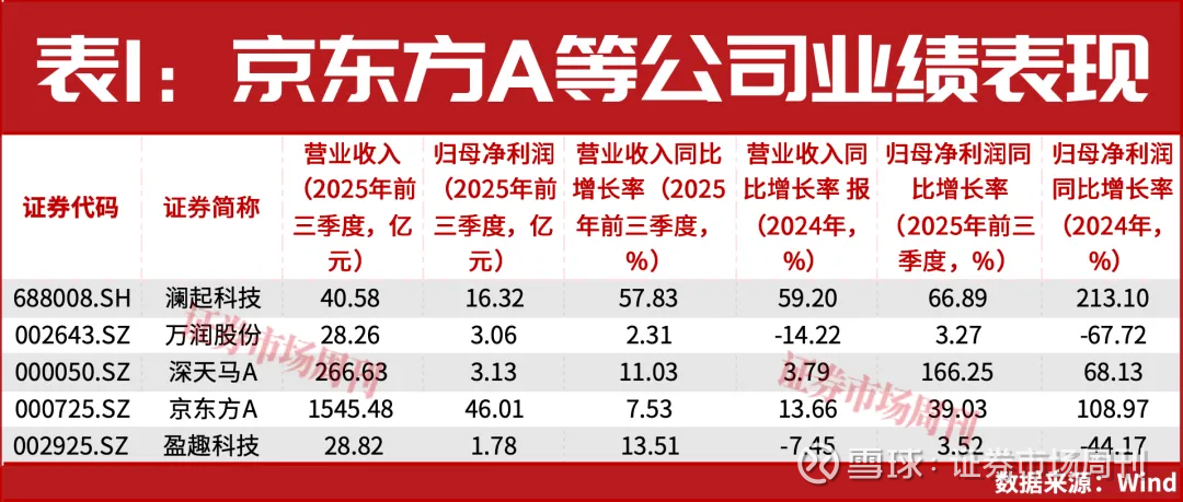 从基金持仓来看,据Wind统计,截至2025年9月30日,澜起科技、京东方A、万润股份的基金持股比例均超过1%,其中澜起科技的基金持股比例从2024年同期的26.68%增至30.5%,京东方A基本持平保持在5.3%,万润股份从0.01%增至1.23%。深天马A和盈趣科技的基金持股比例也有增长。