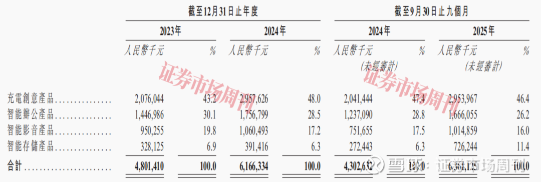智能办公产品是绿联科技的第二大收入来源,该品类提供综合智能办公产品组合,涵盖扩展坞、多屏显示及专业键鼠外设解决方案,专为满足现代商务办公及居家办公需求而设计。根据弗若斯特沙利文的资料,按2025年零售额计,绿联科技在中国扩展坞市场排名第一位。报告期内,智能办公产品贡献的收入占比有所下降,分别为30.1%、28.5%、26.2%。