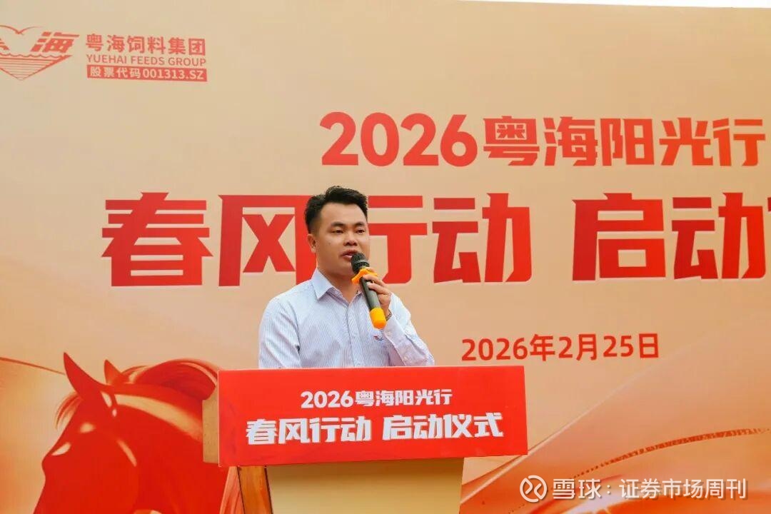 2月25日下午,广东粤海饲料集团(股票代码:001313)在总部湛江及全国各分子公司同步举行2026【粤海阳光行】春风行动启动仪式。这是继1月25日以“跨越发展”为主题的32周年庆暨招商大会之后,粤海饲料在新一年的又一次大规模集结。