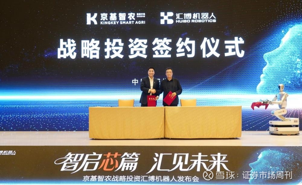 2026年3月31日,京基智农(000048.SZ)在深圳成功举办主题为“智启芯篇 汇见未来——京基智农战略投资汇博机器人发布会”,与汇博机器人完成战略签约,标志着京基智农正式控股汇博机器人。