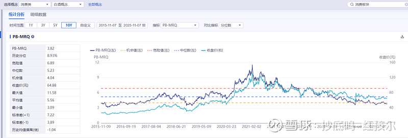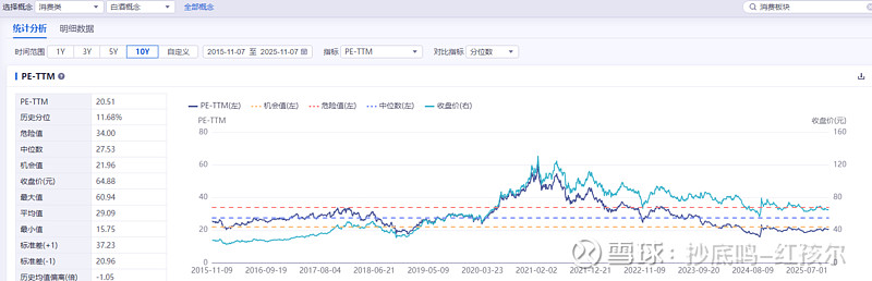 再来看看今日涨幅较大的消费板块中白酒概念的分位数